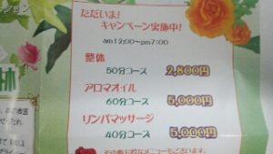 整体とアロマオイルは同じ内容です。アロマが付くか服のまま行うかの違いです。