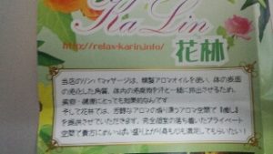 「当店のリンパマッサージは、精製アロマオイルを使い、体の表面の老化した角質、体内の老廃物を汗と一緒に排出させるため、美容・健康にとっても効果的なんです。