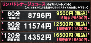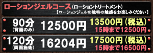 シャワー時間が無い分良い時間配分されておりますが、90分なのに全面が15分程度としか施術されませんのでプラン選択時には時間の配分にご注意ください。